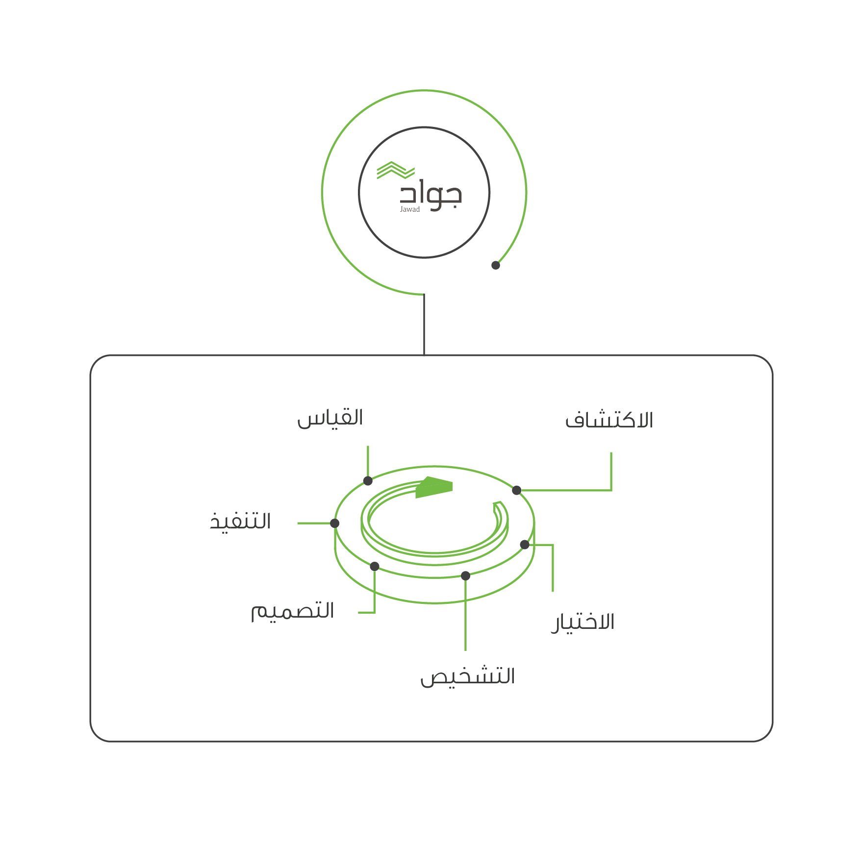 1- الاكتشاف 2- الاختيار 3- التشخيص 4- التصميم 5- التنفيذ 6- القياس